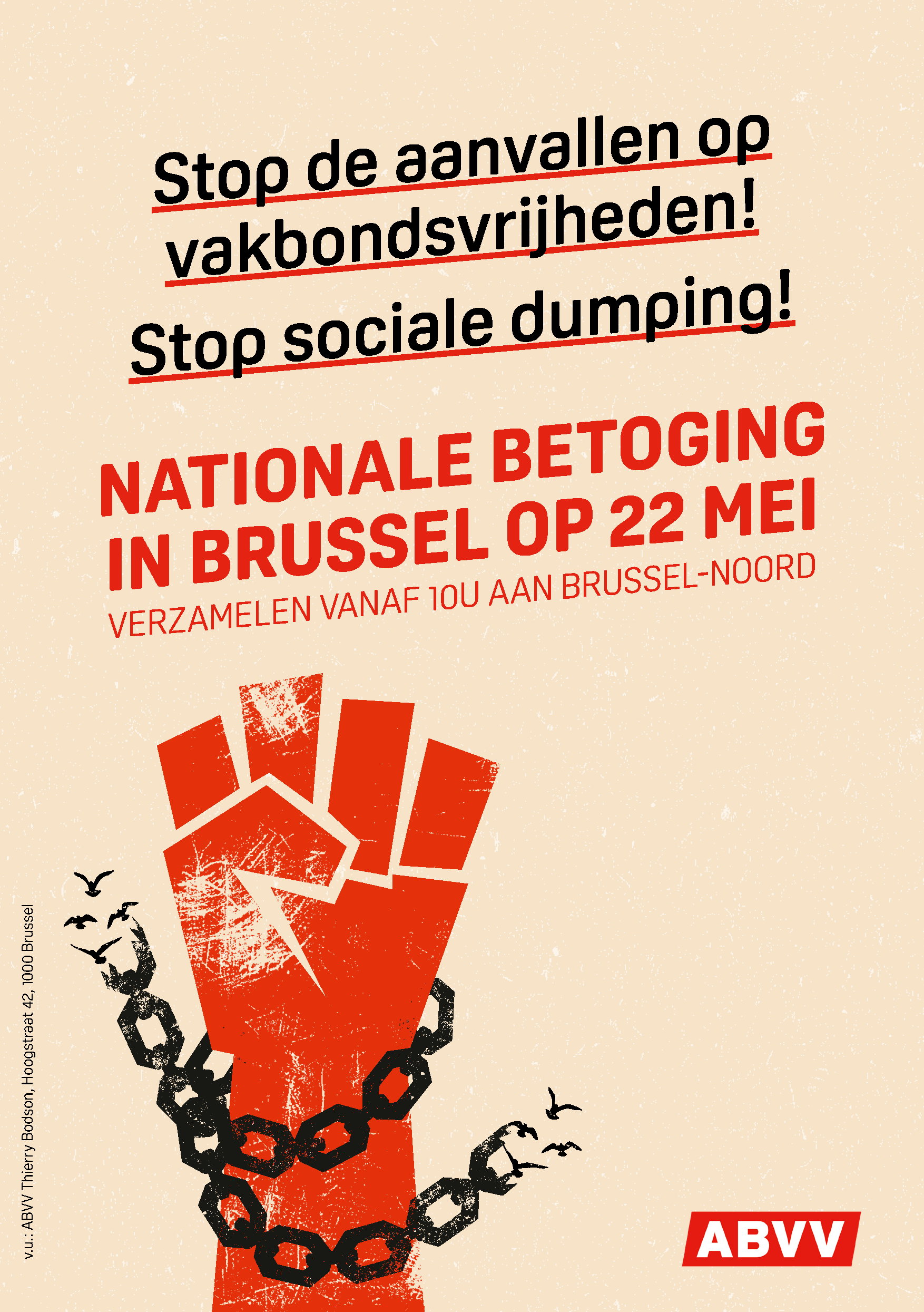 Op 22 mei organiseert het ABVV een nationale betoging ter verdediging van onze sociale en syndicale rechten.